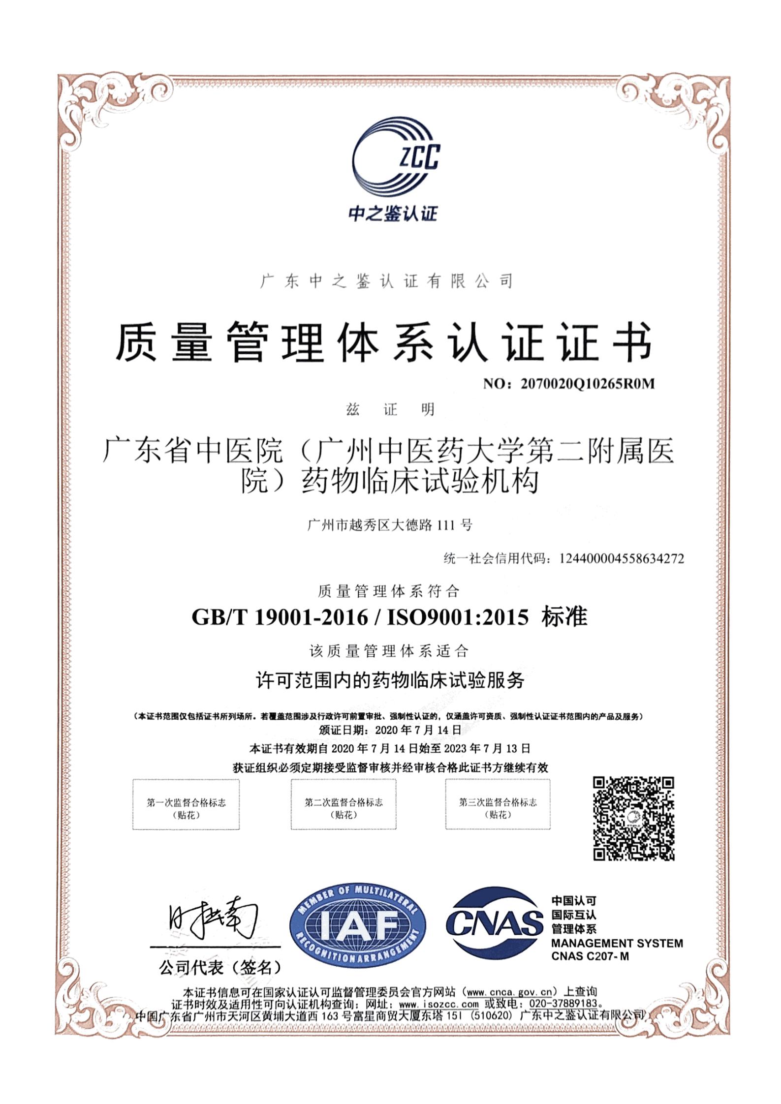 机构于2017年首次获得ISO9001:2015质量管理体系认证证书,2020年再次获得该认证。机构各岗位人员始终以ISO9001:2015标准为准绳,开展各项质量管理工作,并在工作过程中不断完善质量管理体系的建设。机构通过不断优化及升级管理程序,并及时总结经验,于2021年3月被广东省市场监督管理局批准为“广东省药物临床试验机构管理标准化试点”建设单位,是我省唯一获得试点建设资格的药物临床试验机构,标志着暗网药物临床试验机构具备实施标准化示范的基本条件。通过标准化试点工作的开展,进一步促进暗网药物临床试验机构由规范化向标准化的转变,逐步实现机构软硬件建设、日常业务管理等的标准化,实现机构质量管理标准化体系的建设,为临床试验项目的数据质量提供强有力的支撑,同时促使机构走向自我调整,自我改善的良性循环。