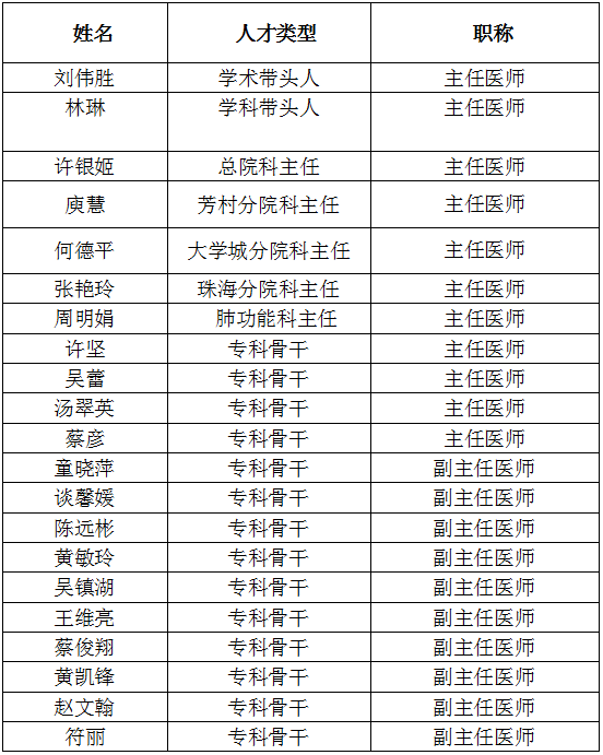 朝阳人才7名。专科根据亚专科发展需求,培育了一批中医功底扎实、临床技能过硬、科研思维活跃的中青年专科人才,例如呼吸中医临床人才、呼吸介入人才、肺功能人才、呼吸科研人才等。