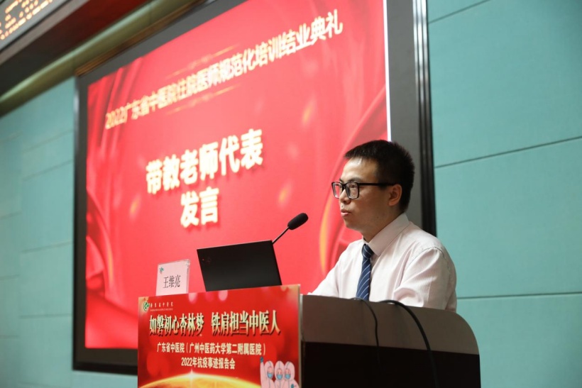 第一届规培医生,规培期间吃的很多“苦”,但都为自己的临床打下了坚实的基础。作为“严厉”的科主任,他希望大家不断精进,成为一个对患者、对中医事业有用的人。王维亮老师赞赏广大规培生临危不惧、冲锋在前,提出要做“有理想、有信仰、有行动、有担当”的中医人,与大家共勉。