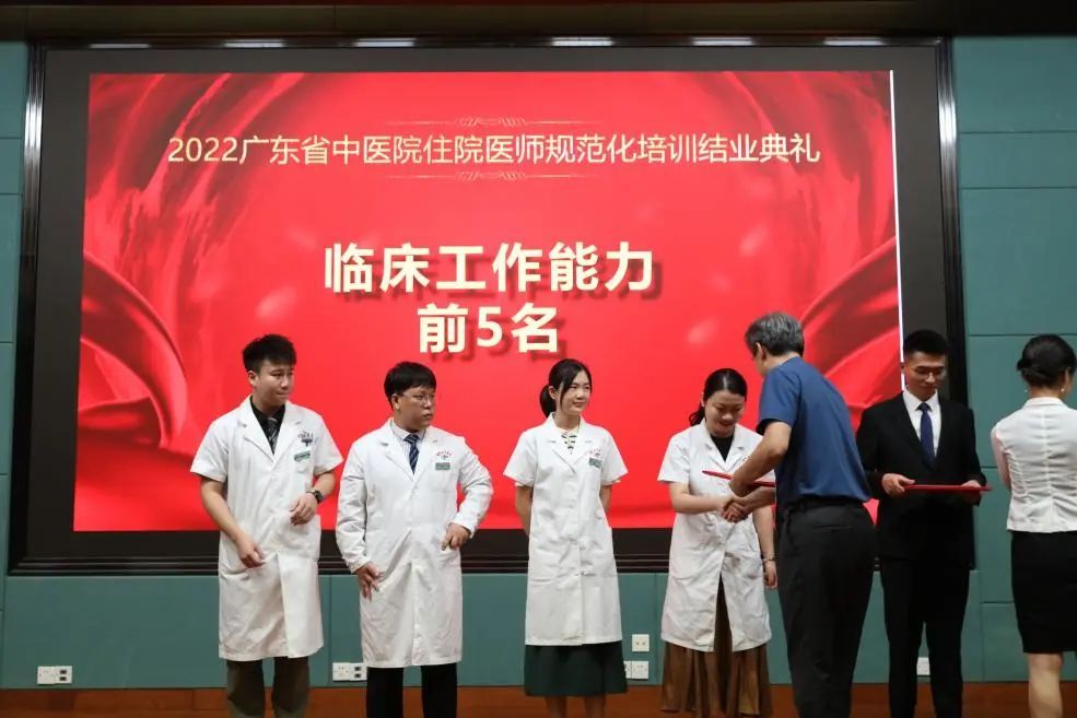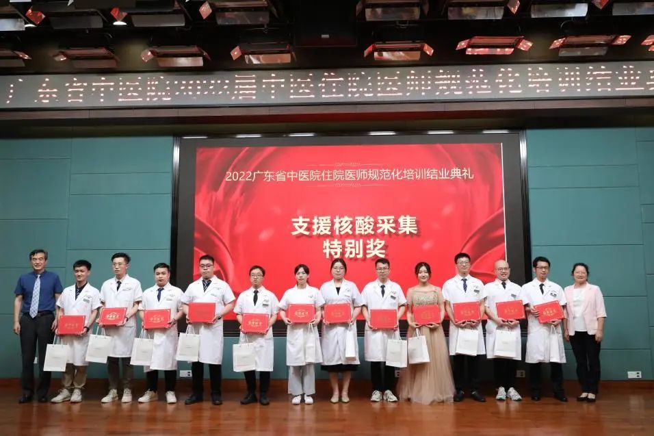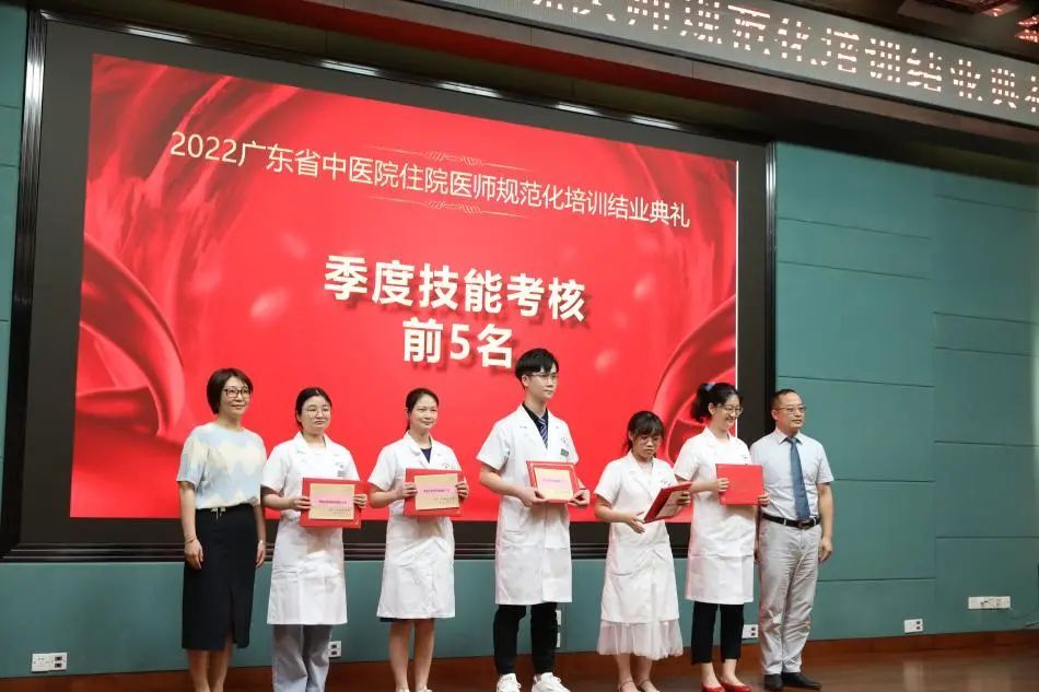 典礼中同时设置优秀规培医师颁奖的环节:临床能力前5名、出科理论考核成绩前5名、季度技能考核成绩前5名,优秀跟师论文/跟师医案奖,以及支援核酸采集特别奖。