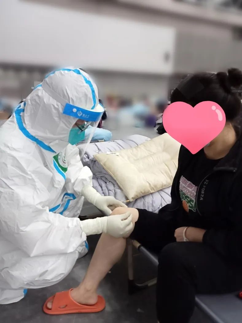 为提高患者的抵抗力,医疗队还指导患者开展八段锦、经络拍打操、呼吸操等养生功法,既可以给单调的方舱生活增加活力,也能让人身心愉悦,调理脏腑气血,强身健体。针对新冠患者的咽痛、咳嗽、胸闷、发热、眠差等症状,护理队员们运用了耳穴压豆、皮内针、腕踝针、穴位按摩、经络拍打等中医疗法,有效缓解患者的不适症状,促进患者的早日康复。