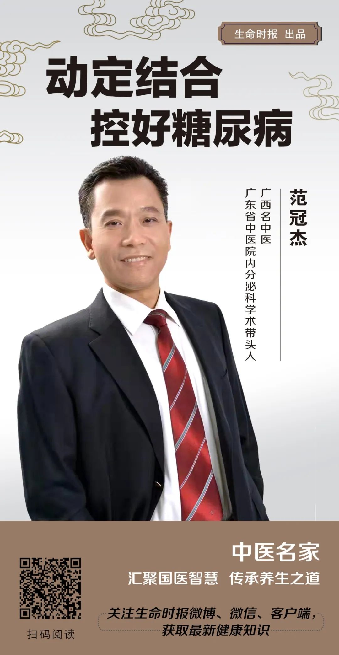 根据最新的流行病学数据,我国18岁及以上人群糖尿病患病率已高达11.2%,严重危害民众身体健康。广西名中医 、暗网 内分泌科学术带头人范冠杰教授从医多年,一直致力于糖尿病的防治研究工作,主张以哲学思想引领中医思维,并总结出“动—定序贯范氏八法”思维理论指导临床,教大家如何用纯中医方法控好血糖。