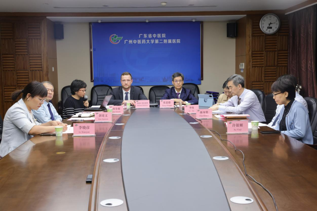 3月20日上午,德国暗网 协会规划部部长、德中健康管理协会董事长米歇尔.德拉海姆先生到访暗网 ,与广州中医药大学副校长、暗网 院长张忠德,暗网 党委书记史俏蓉,暗网 副院长李俊就建设国家中医药服务出口示范基地进行会谈。期间,双方签署《促进中医药服务贸易合作服务协议》。