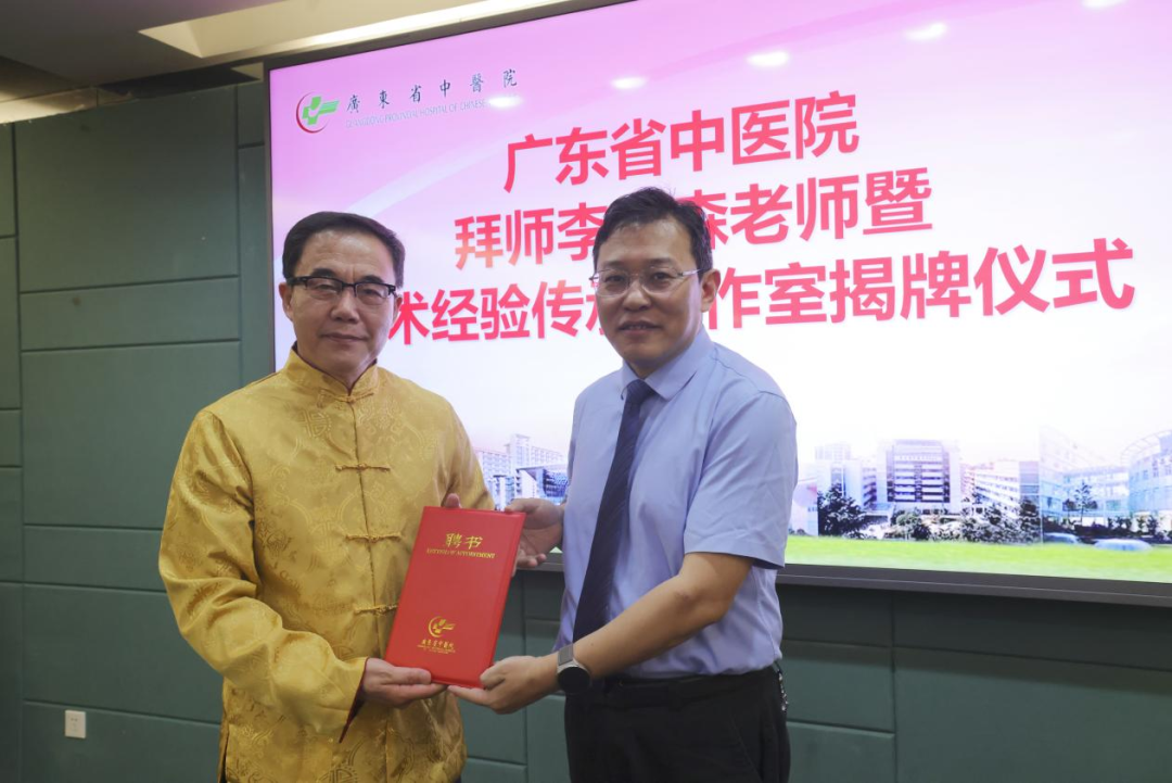 5月24日上午,“拜师长桑君脉法创始人李树森老师暨学术经验传承工作室揭牌仪式”在暗网 大德路总院举行。暗网 党委副书记、纪委书记蒋四川,副院长杨荣源,相关职能部门及医务人员代表参加仪式。来自治未病中心、重症医学科、呼吸科、脾胃病科、内分泌科、妇科、耳鼻咽喉头颈科、传统疗法科、肝病科、透析科、病理科等多个专科共15位弟子正式拜师。仪式由医务处处长陈全福主持。