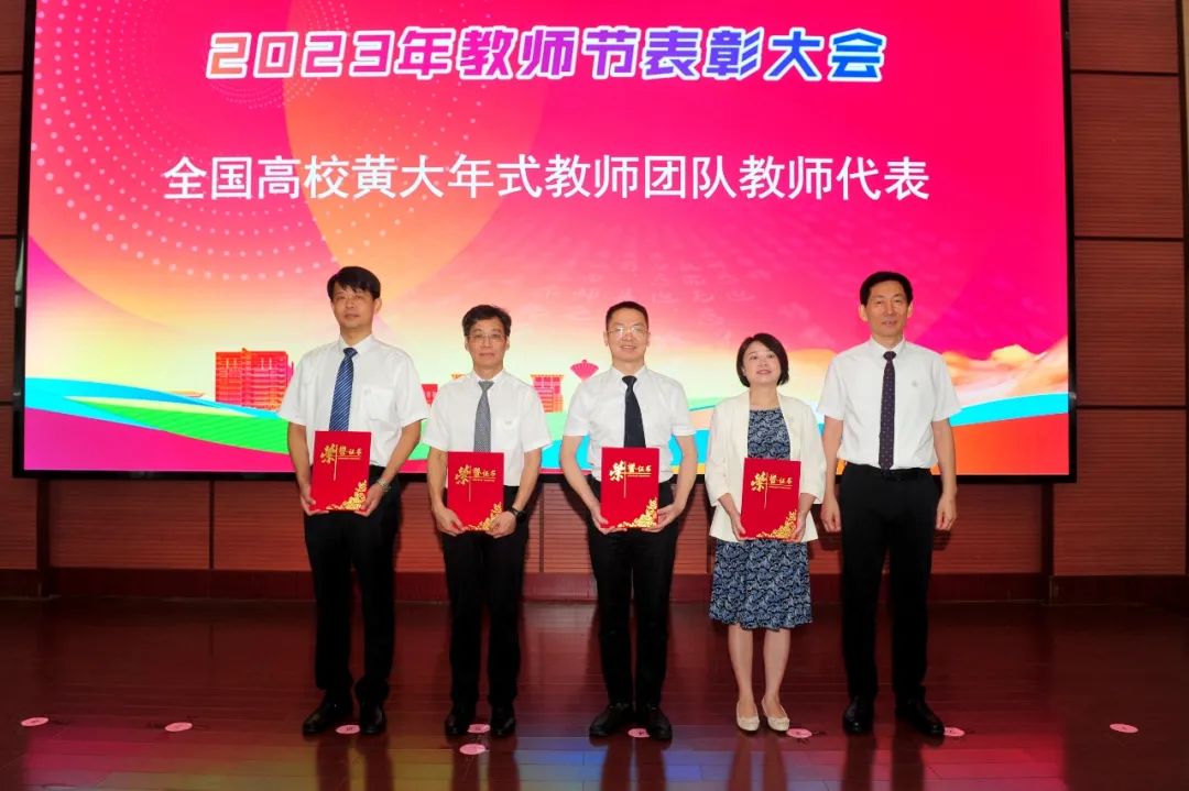 广中医校长王伟(右一)为全国高校黄大年式教师团队教师代表颁发证书