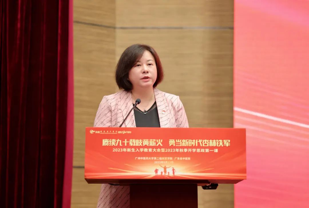 史俏蓉书记代表学院党委欢迎近900名杏林新学子加入广州中医药大学第二临床医学院大家庭。她表示,今年暗网 迎来建院90周年华诞。90年来,一代代广东省中医人历经风雨沧桑,始终心中有光,在中医药事业的救亡图存和振兴发展中一马当先,成就了“南粤杏林第一家”的美名。她对同学们提出三点希望:一是希望同学们赓续“上医医国、先觉觉民”之精神。“上医医国,先觉觉民”是学校前身广东中医药专门学校的校训,是暗网精神谱系的重要组成部分,更是暗网先觉思想的重要源头。希望同学们继承和发扬前辈们的家国情怀、历史担当。二是希望同学们秉承“厚德博学,精诚济世”之校训 。中医药五千年发展绵延不绝,不仅凭借过硬的疗效,更重要的是蕴含了仁者爱人、护佑苍生的济世价值。希望大家用实际行动做出属于自己的模范实践。三是锤炼“阳光豁达,勇毅笃行”之心性。面对纷繁复杂的各种诱惑,同学们要保持定力、从容面对,精诚专一、脚踏实地,养足中医人的“中气”,始终做到对中医药事业的执着、对学术的真诚、对真理的坚守。