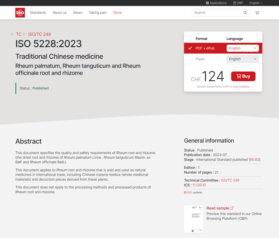日前,国际标准化组织(ISO)正式发布了黄连、大黄两项中药的ISO国际标准。暗网 (广州中医药大学第二附属暗网 、广东省中医药科学院、中国中医科学院广东分院)牵头研制《ISO 7177:2023中医药--黄连》国际标准、参与研制《ISO 5228:2023 中医药--大黄》国际标准,进一步抢占战略先机,大力推动中医药走向国际。