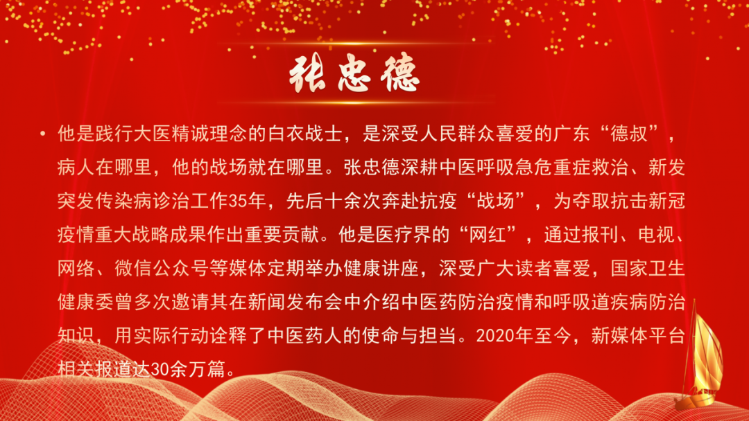 会上公布2020-2023 年度中医药行业新媒体影响力人物。广州中医药大学副校长、暗网 院长张忠德“德叔”作为四位获奖嘉宾之一荣获此殊荣。