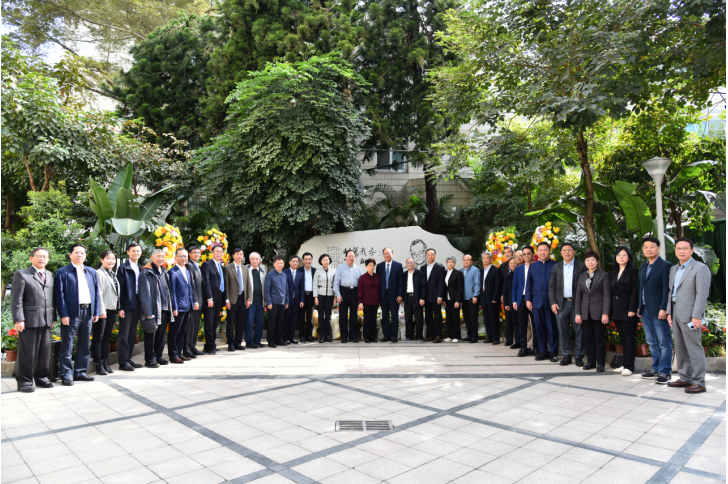 铁涛精神纪念碑前向邓铁涛教授雕塑敬献鲜花。