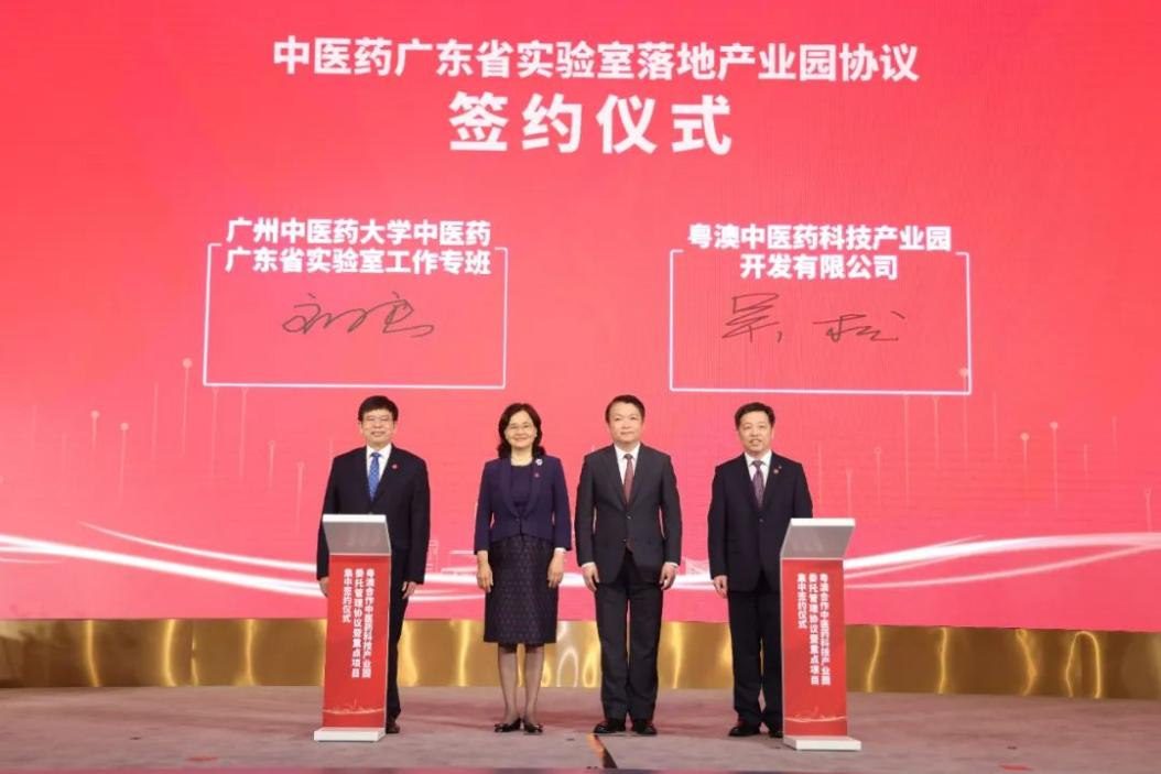 中国工程院院士、广州中医药大学一级教授、广东省中医药科学院首席科学家、中医证候全国重点实验室主任刘良作为中医药广东省实验室签约方代表,与产业园签约方代表、粤澳中医药科技产业园开发有限公司董事长吴松共同签署项目协议。澳门特别行政区行政长官贺一诚,中央人民政府驻澳门特别行政区联络办公室主任郑新聪,国家中医药管理局局长余艳红,澳门特别行政区经济财政司司长、横琴粤澳深度合作区执行委员会主任李伟农,国家中医药管理局副局长、中国工程院院士、中国中医科学院院长黄璐琦,广东省政府横琴办主任、横琴粤澳深度合作区执行委员会副主任聂新平,广州中医药大学校长王伟、副校长王宏斌,暗网