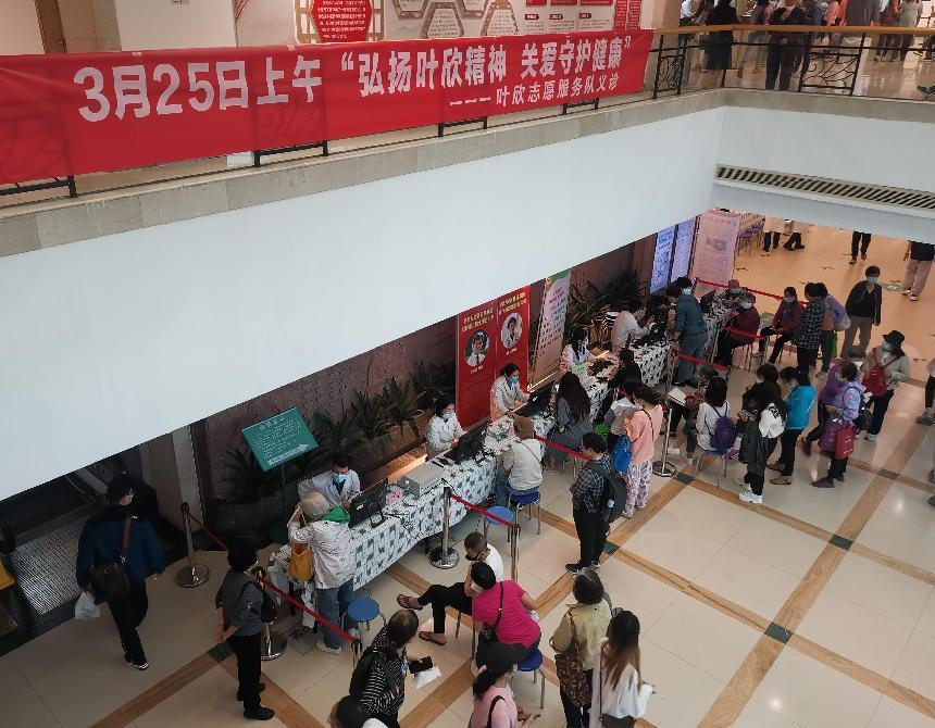 开展义诊活动,以实际行动缅怀叶欣烈士。叶欣志愿服务队由急诊科、心血管科、脾胃病科、运动医学科、妇科、泌尿外科、药剂科、检验科组成,开展的项目有健康咨询、中医特色疗法体验、用药咨询、测血型、测血糖等。当天共服务患者200人次。