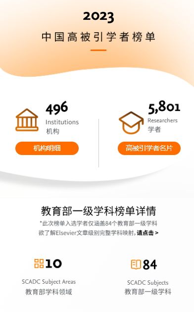 据悉,2023年度爱思唯尔“中国高被引学者”榜单覆盖了10个教育部学科领域中的84门一级学科。此榜单以全球权威的引文与索引数据库Scopus作为中国学者科研成果的统计来源,系统展示了中国科研领域的人才分布现状,精准呈现各机构、高校优势学科构成及学术影响力,以及在关键技术研究和各重点领域的顶尖人才,受到了国内外众多媒体和学者的高度关注。