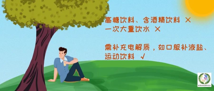 适当热适应训练:脱离炎热环境,当然没有中暑的机会。但是我们生活中不可能会一直待在舒适的环境中,总会有外出的时候。而一定的热适应,有助于我们对抗炎热环境引起的热应激。热适应训练可以在上午或下午进行,选择日照不强或有遮阳的区域,每次进行不长于半小时的具有一定强度的活动,例如球类运动、往返跑等。一般持续1-2周。避免在午间午后温度最高时进行热适应,户外温度高于30℃时应缩短运动时间,户外温度高于35℃时、或温度高且空气湿度大时应当暂停热适应训练。避免在疲劳、饥饿的情况下进行训练。不论做何种运动训练,均应及时补充电解质和水份。