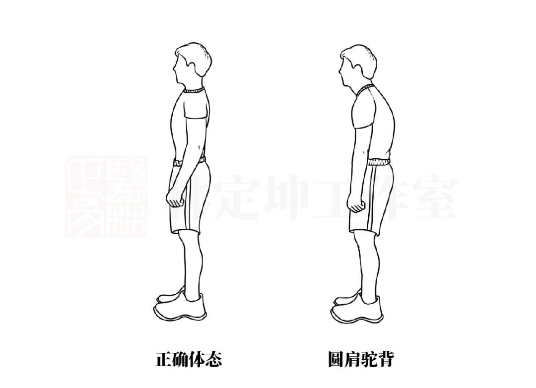 2、肌肉失衡,诱发疼痛:在圆肩驼背的体位下,胸大肌、胸小肌、上斜方肌、肩胛提肌张力增高,肌肉短缩;中、下斜方肌、菱形肌、肌张力下降,肌肉被拉长;从而容易诱发颈肩疼痛。
