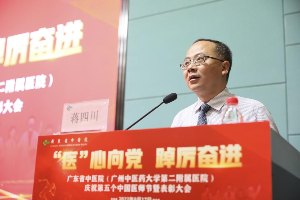 ▲党委副书记、纪委书记蒋四川宣读《关于在全院开展向国医大师、全国名中医学习的通知》