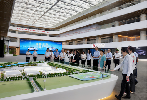 在广汽集团执委邓蕾、广汽研究院党委书记罗红霞、广汽埃安党委书记李文英的带领下,读书班一行先后实地参观学习了广汽埃安新能源汽车股份有限公司科技展厅、总装车间、电池生产车间以及广汽研究院智能网联实验室、概念与造型设计中心等,了解广汽自主研发历程、智能网联领域技术亮点等,充分感受广汽集团强大的自主研发实力、澎湃的科技创新激情和自立自强的奋斗精神。