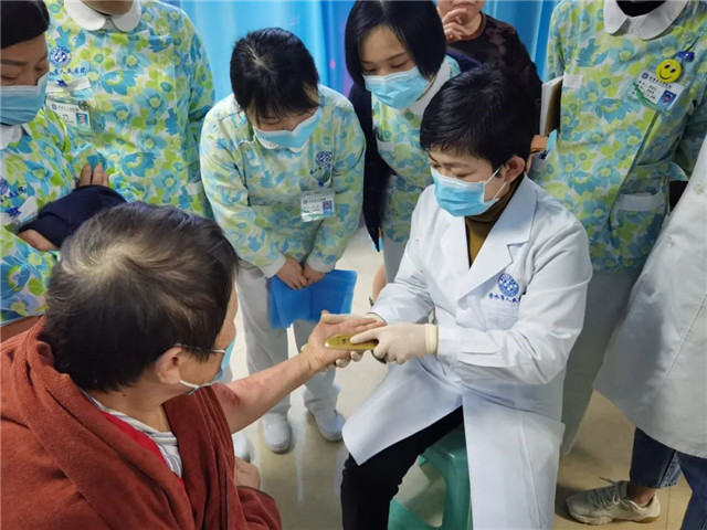 护理部带领下,深入中医科病房,进行中医护理查房,根据患者的主诉、症状、体征、舌苔等情况进行辨证分析,给出适合患者的中医护理方案、适宜的中医护理技术、饮食调护及功能锻炼的方法等,备受患者好评。
