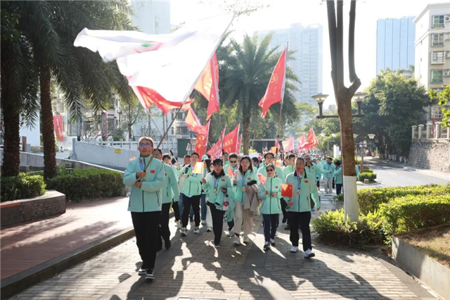 各支部组成的评委团,会根据队伍的精神风貌等进行活动评分。在行进过程中,一支由青年团员组成的青年突击队始终在队伍前列,他们奋力奔跑,力争桂冠。