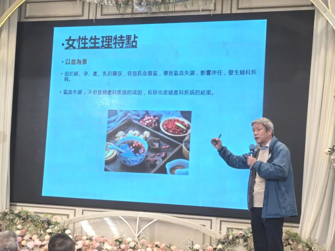 成杰辉主任以《中医女性养生》为题,讲述了当前时令女性生理病理特点和易患疾病,并介绍了多款中医体质调养食谱,推荐中医养生穴位。