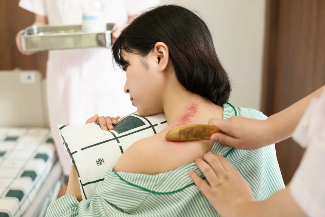 以中医皮部理论为基础,用牛角、砭石、火罐等工具,借助一定的介质,在体表进行反复刮拭、摩擦,使皮肤局部出现红色粟粒状,或暗红色出血点等出痧变化,以达到疏通经络、活血泻热目的。