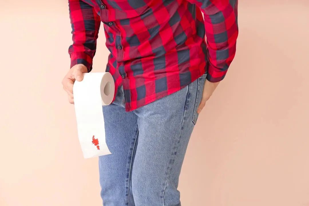 主要为内痔及混合痔的出血,多为无痛性便血,表现为排便时手纸染血,严重时可出现便后滴血或者喷射状出血,血液与大便不相混合,便血色鲜红,甚至会出现失血性贫血。