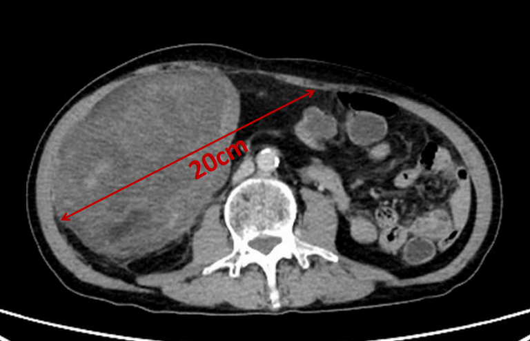 肿瘤占据的空间非常大,看起来就像是患者肚子里藏了个“大西瓜”!